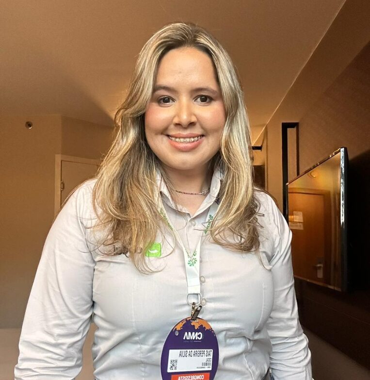Tais Pereira Da Silva está na empresa há mais de um ano. Iniciou sua trajetória como operadora de motobomba e, atualmente, ocupa o cargo de encarregada agrícola de Fertirrigação na unidade Narandiba.